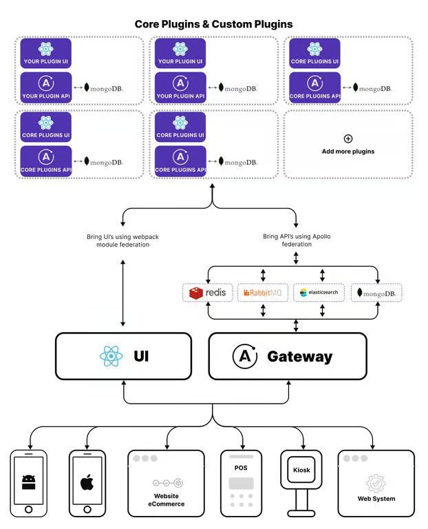 Backend part is responsible for ensuring all APIs of different plugins work together smoothly.